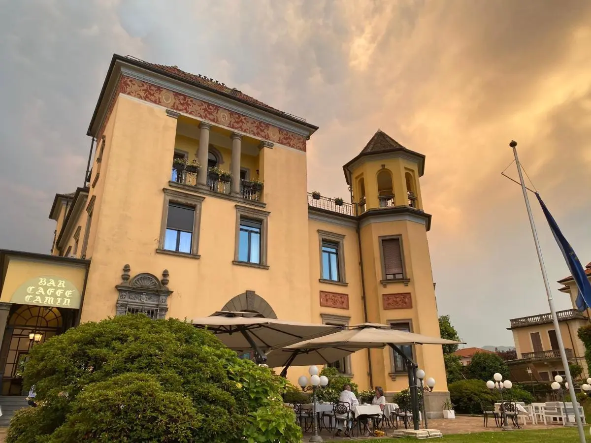 Die prachtvolle Jugendstil-Villa mit hohen Freskendecken und Buntglas-Fenstern stammt aus dem 19. Jahrhundert. Das Hotel erwartet Euch direkt gegenüber vom Lago Maggiore, mit Blick auf die Promenade von Luino. Alle Zimmer im Camin Hotel Luino sind im klassischen Stil eingerichtet und verfügen über einen LCD-Sat-TV sowie über ein voll ausgestattetes Badezimmer. Einige Zimmer bieten ein extra großes Doppelbett, andere verfügen über einen Wohnbereich und eine eigene Terrasse. Im Sommer lädt der Garten mit Tischen und Sonnenschirmen zum Frühstück und Abendessen ein. Das Camin Luino gilt neben der Villa Porta als eines der schönsten und komfortabelsten Hotels auf dieser Seite des Sees.