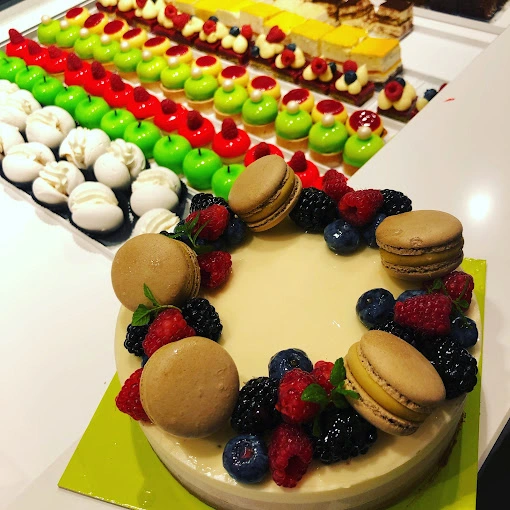 Moderne Pasticceria mit Tischen innen und außen; unbedingt probieren: Cannoli, Baba con rum, Meringue Creme Törtchen. Produzieren unsere Hochzeitstorte
